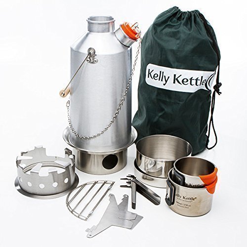 Aluminium 'Base Camp' Kelly Kettle (1.6ltr) - ULTIMATE KIT. (NOW WITH STAINLESS STEEL FIRE-BASE AS STANDARD) Camp cooking made easy. Boil Water Ultra Fast and Cook Food in the outdoors using the famous Kelly Kettle and the Hobo (wood) Stove accessory. Suitable for solo or group use. This Ultimate Kit includes: 1.6 Ltr Alu. Kettle + Cook Set + Pot-Support + Hobo Stove + high quality Cup Set (all Stainless steel) + Carry Bag. This Kettle now comes with an upgraded Stainless Steel Fire-base as standard. Suitable for Fishing & Hunting, Scouts, Car Camping, Fun Family Picnics, power shortages after storms or Emergency Survival Kits. Weight: 3.57lb / 1.62kg - Excluding packaging.