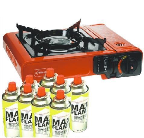 PORTABLE SINGLE GAS STOVE COOKER WITH 4 x GAS BOTTLES CAMPING COOKING BBQ NEW