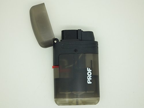 Prof Powerful Double Flame Lighter Windproof Electronic Refillable Jet Gas Turbo, Blue, Green, Black and Red (Black)