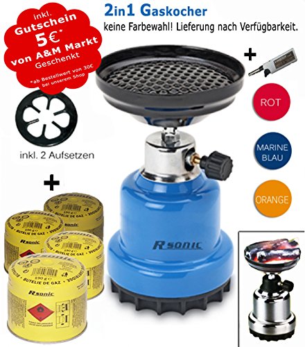 Gas Camping Stove Shisha Coal Lighter Barbecue Lighter + 4x Gas Cartridges + Lighter