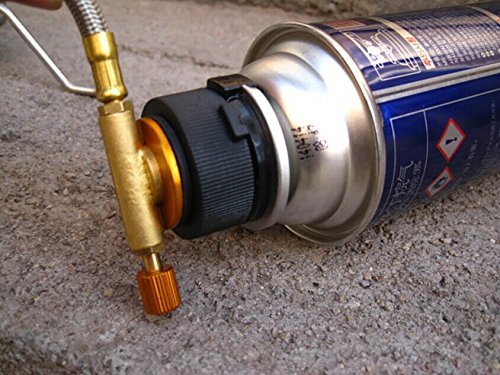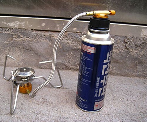 All images of Hensych Outdoor Camping Hiking Stove Burner Adaptor Split Type Furnace Converter Connector Auto-off Gas Cartridge Tank Adapter (Black)
