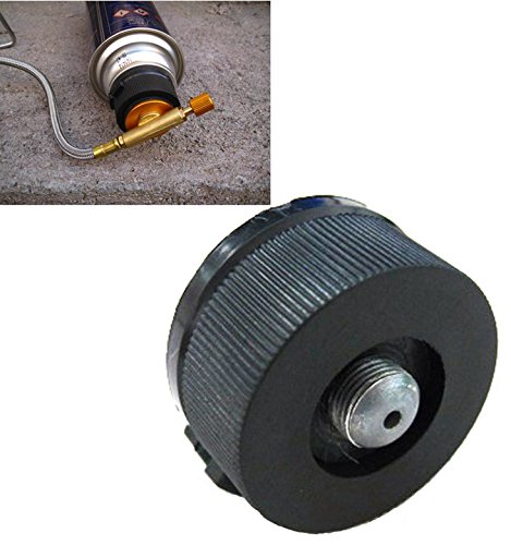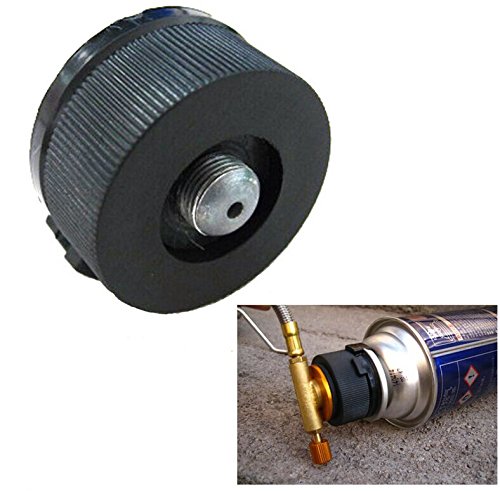 Hensych Outdoor Camping Hiking Stove Burner Adaptor Split Type Furnace Converter Connector Auto-off Gas Cartridge Tank Adapter (Black)