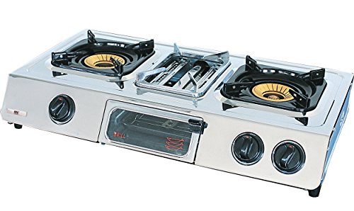 NJ GC-87 Gas Stove Cooktops 2 Burners with Grill and Oven Stainless Steel Surface for Outdoor use