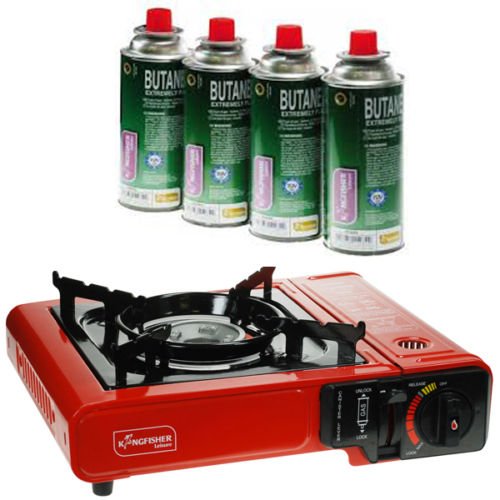 PORTABLE GAS COOKER STOVE + 4 BUTANE BOTTLES CAMPING BBQ PARTY BURNER OUTDOOR