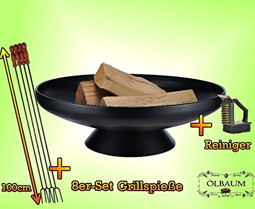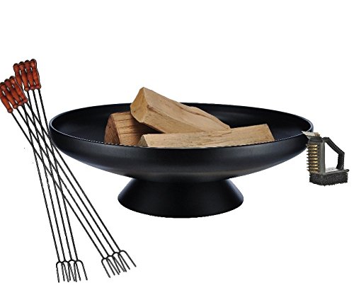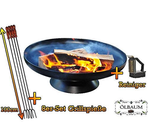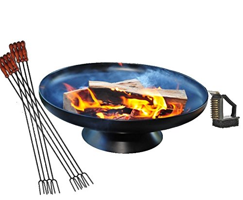 All images of Solid Steel Patio Stove as Large Fire Bowl 60 cm Diameter including Standfestem Stand/Ring Geschweisst Outdoor Range - BBQ, Grill, Campfire, Romantic Garden Lighting Style Light with 8 Spießchen and Cleaning Brush