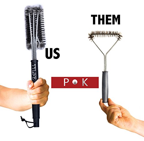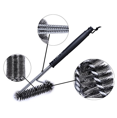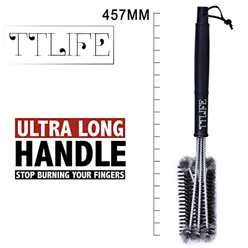 TTLIFE BBQ Grill Cleaning Brushes Barbecue Tool Washing Cleaner Brush Stainless Steel, 3-Sided 17.5 inches long with Hanging Loop