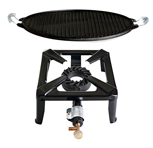 Camping Stove with 8.5 kW Power, Dimensions 30 x 30 x 15 cm and Cast Iron Grill Plate Diameter 38 cm