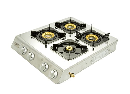 Gas Stove 4 Burners Stainless Steel Auto Ignition LPG NGB4