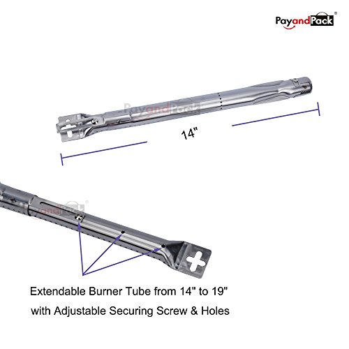 All images of PayandPack 42204 (2-Pack) Universal Length Adjustable 14" to 19" Stainless Steel Tube Burner Replacement for most gas BBQ grill, oven, cooker, stove, baker, deep fryer models