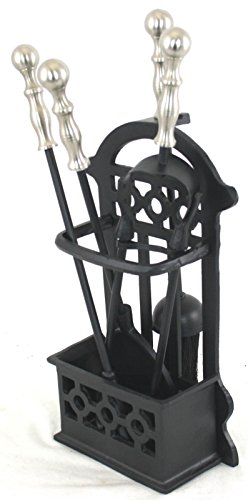 All images of Aluminium and Black Painted Iron 5 Piece Fireside Companion Tool Set