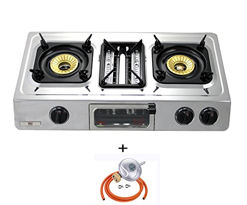 NJ GC-87 Gas Stove 2 Burners Grill & Oven Stainless Steel Outdoor BBQ + Gas Regulator Set