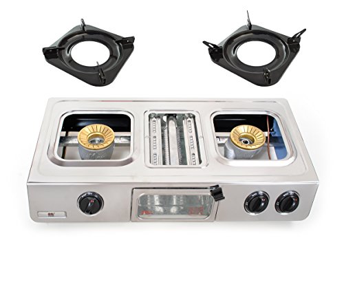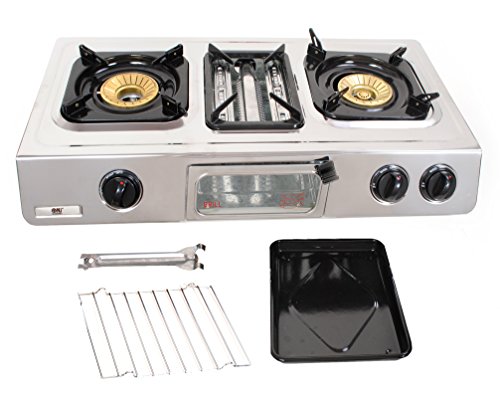 All images of NJ GC-87 Gas Stove 2 Burners Grill & Oven Stainless Steel Outdoor BBQ + Gas Regulator Set