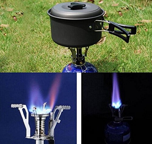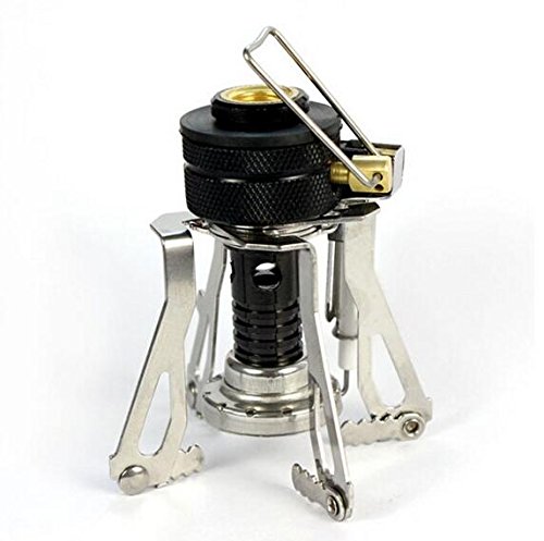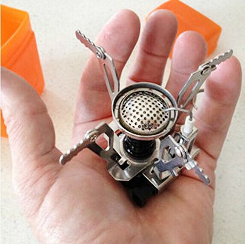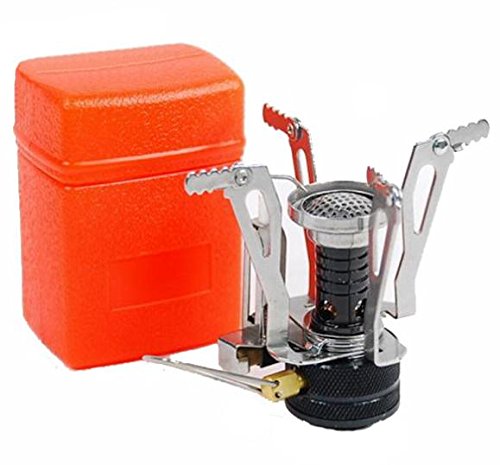 Outdoor Camping Stove WAYCOM Piezo Ignition Gas-powered Backpacking Stove (Silvery Stove + Orange Box)