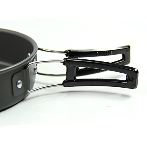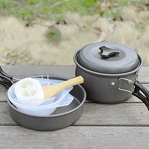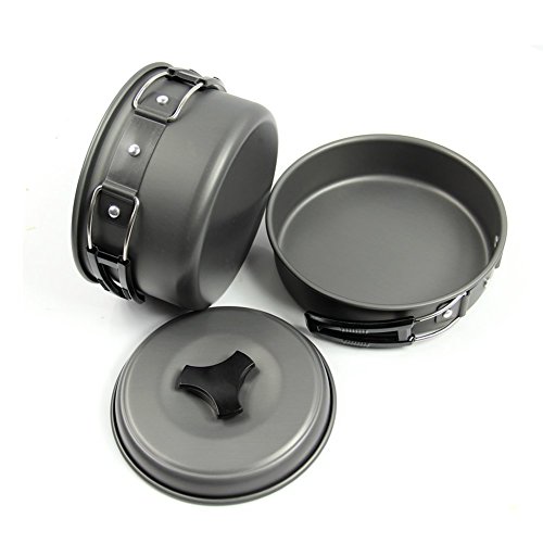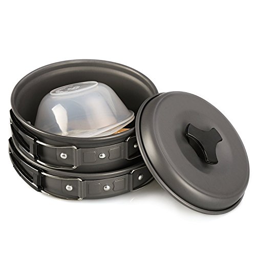 All images of Portable Camping Cookware Backpacking Cooking Kit by AIQI, 8 Piece Hiking Outdoors Bug Out Bag Cooking Equipment, Lightweight, Compact, Durable Pot Pan Bowls with Nylon Bag