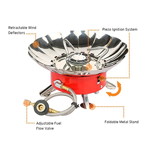 All images of RioRand Portable Collapsible Windproof Outdoor Backpacking Gas Camping Stove (Orange)