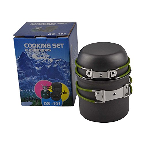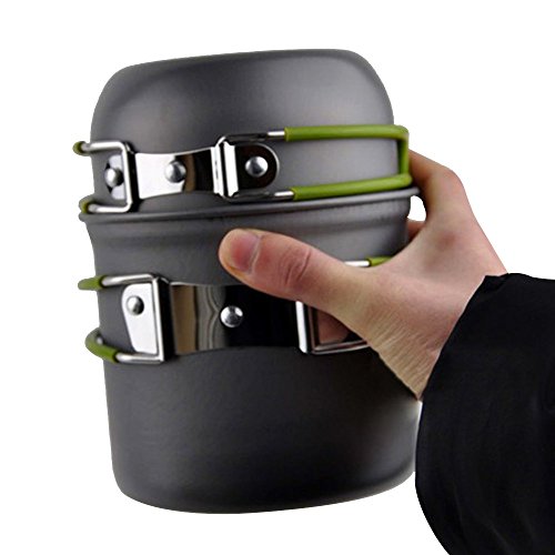 All images of Eizur Portable Outdoor Cooking Set 1-2 People Pot Pan Bowl Cookware Camping Picnic Hiking Utensils Non-stick Aluminum Eco-friendly Military Mess Kit Cook Set Durable Useful