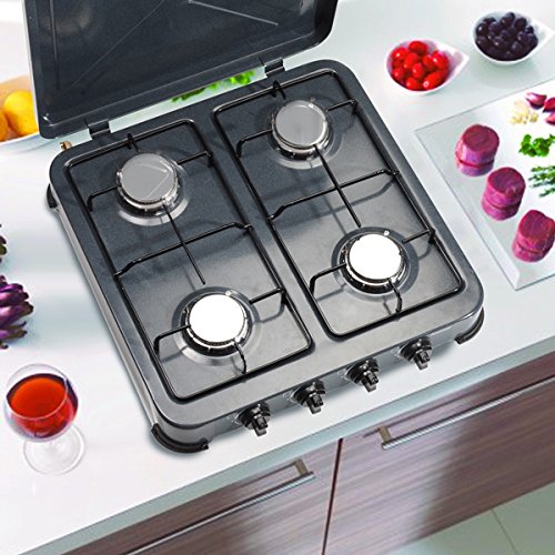 Square Shape Gas Stove With 2 Removable Burner Grates & Fixed Burner Caps
