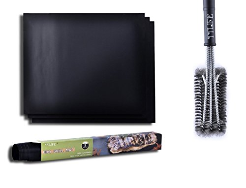 TTLIFE FDA Approved Barbecue Kit Tool Sets ---3Pcs BBQ Grill Sheet Oven liner, 17.5 inch long 3 sided BBQ Grill Cleaning Brushes with Hanging Loop